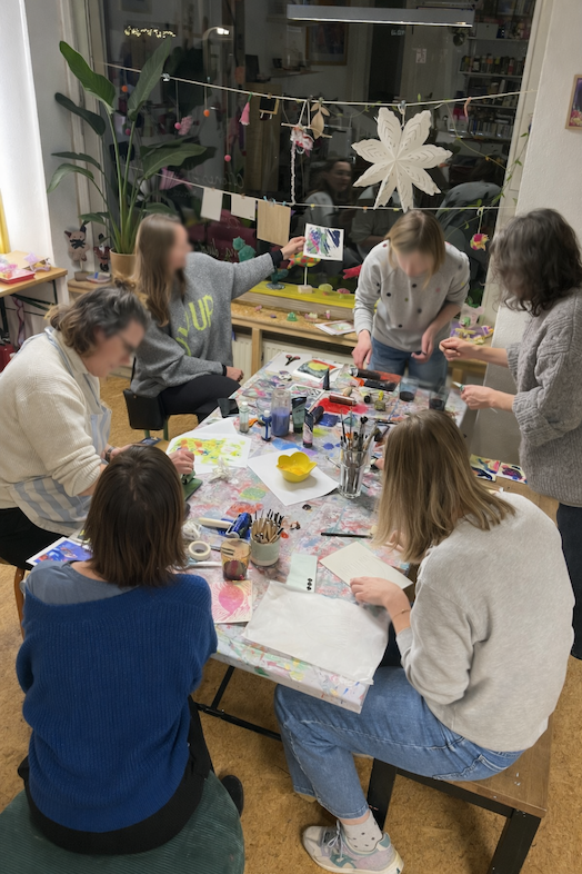 Sonntag Vormittags von 11:00-13:30 Uhr gibt es ein offenes Kunstcafé, wo ihr euch gemeinsam mit euren Kindern und Freunden künstlerisch austoben könnt. Keine Anmeldung erforderlich. Das aktuelle Programm ist immer hier oben auf der Startseite zu finden. Das Kunstcafé findet nicht jeden Sonntag statt – Wenn es stattfindet oben auf der Startseite eine Ankündigung zu finden.